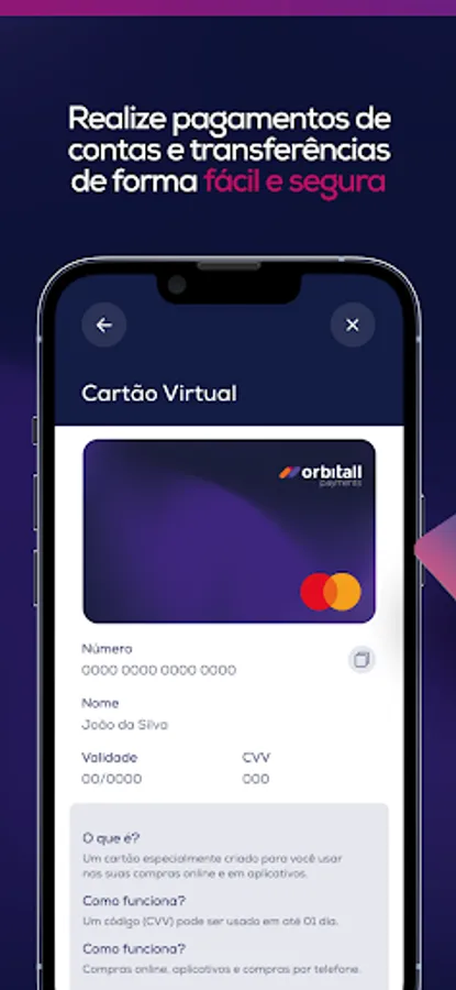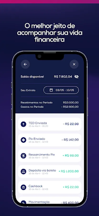 Carry out financial transactions, with several features designed to make your day-to-day life easier, all in one place. Take advantage of the branded prepaid card, without paying interest and without proof of income, with total autonomy to define your spending limit.