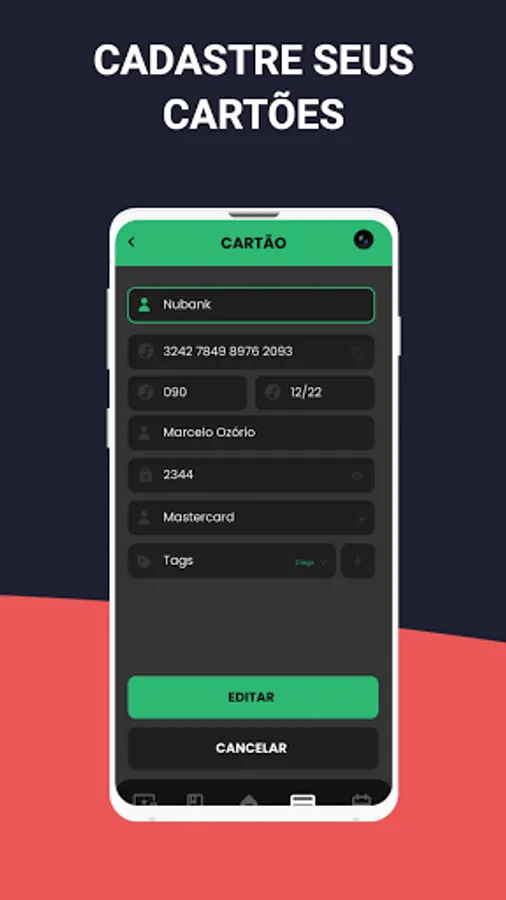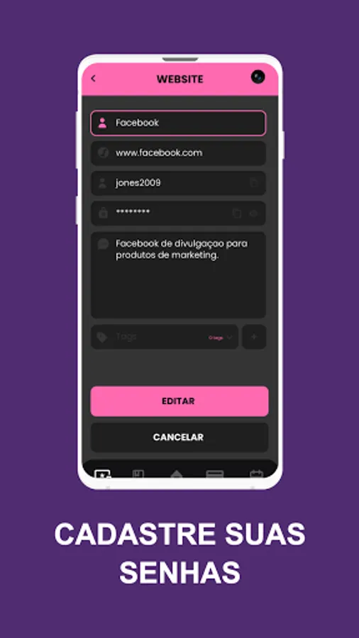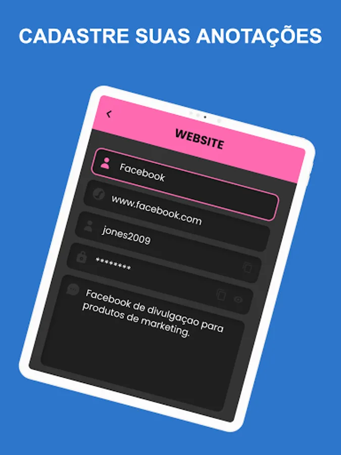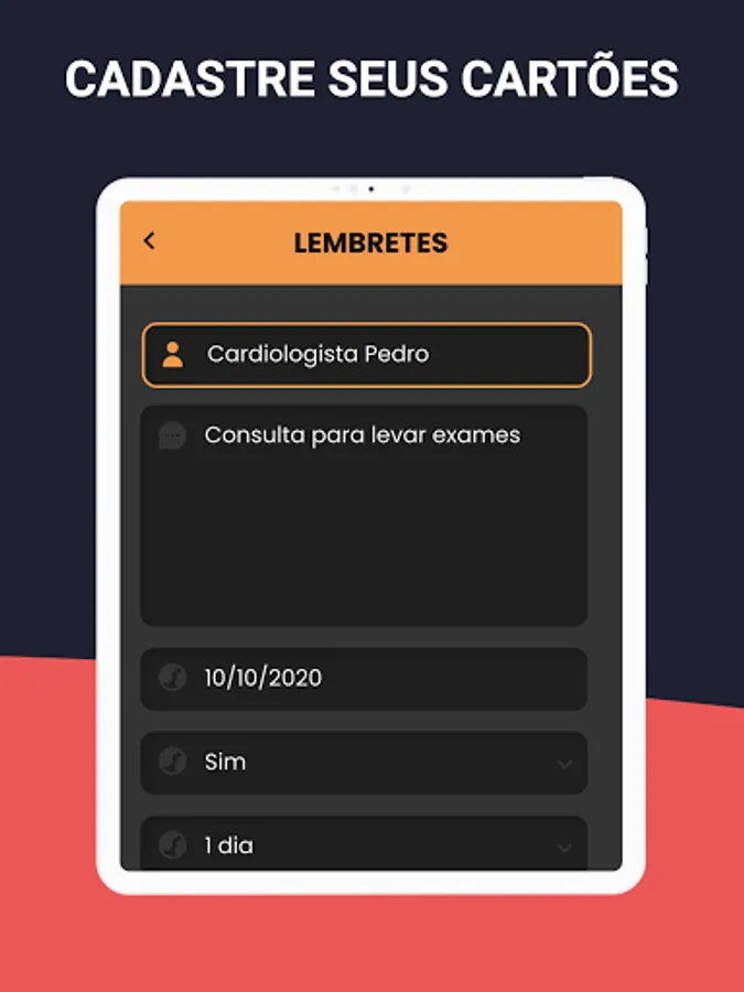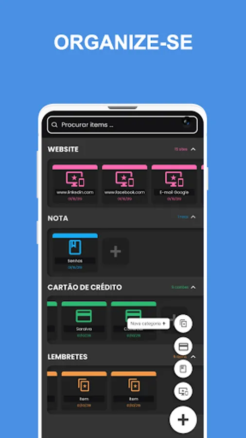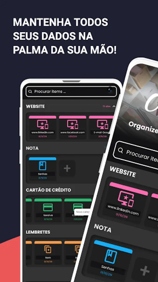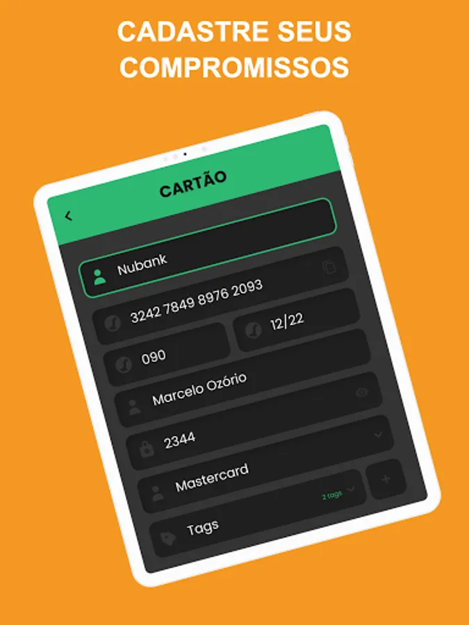 Application that gathers in one place your logins and passwords, notes and reminders, credit and debit cards, and your appointments, so you never miss a previously scheduled appointment.