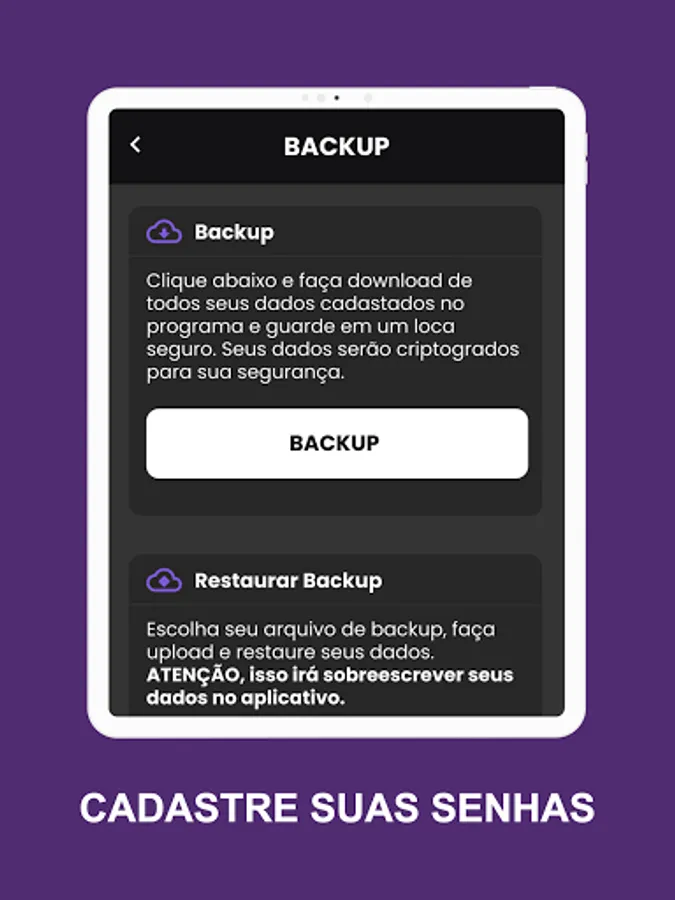 When you register with the application, the system encrypts your password, saving it in the cloud in an encrypted and secure way, allowing only the application and you to have access to your passwords.