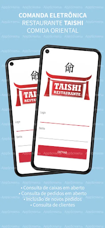 Electronic controls for the TAISHI oriental food restaurant, with the following functions: open cashiers query, customer registration queries, open orders query and opening of new orders.