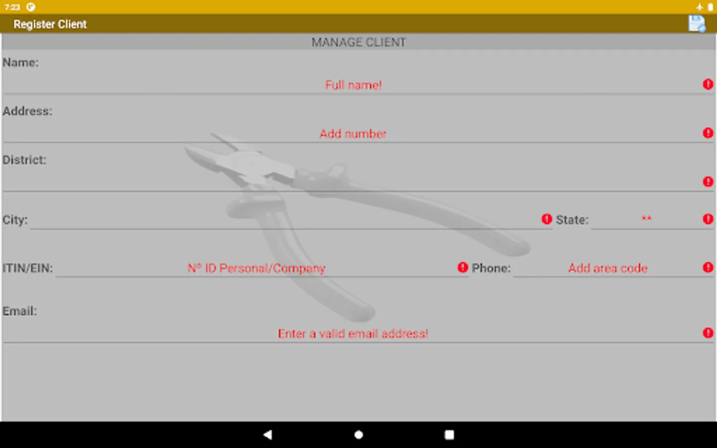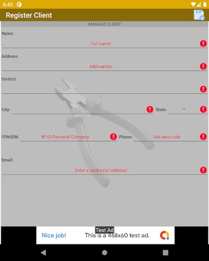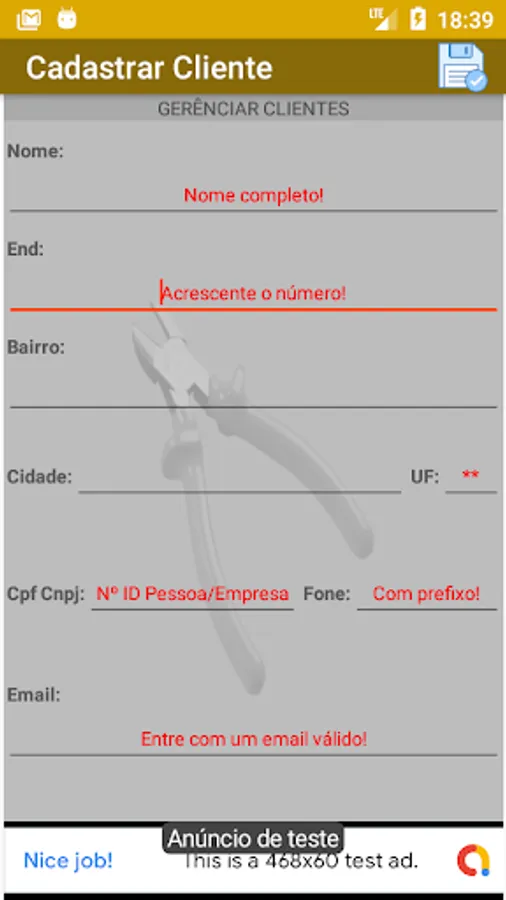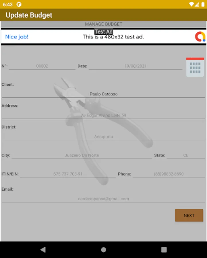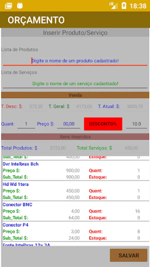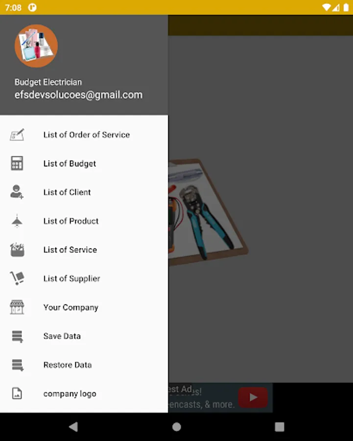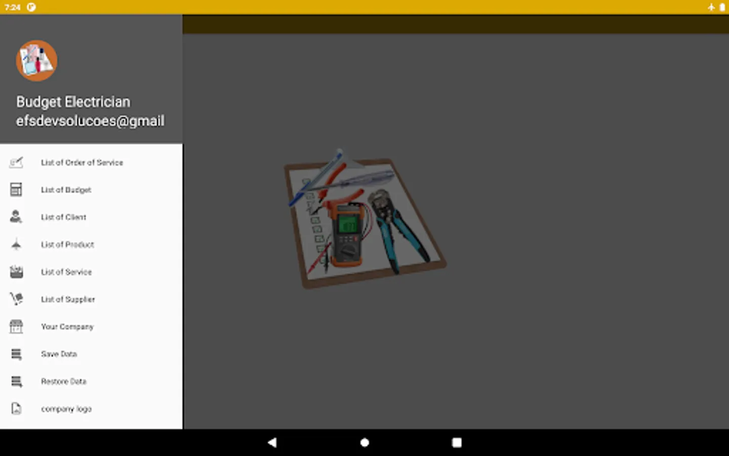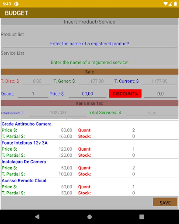 Register your customers, products and services and generate a budget and order of services to send by sharing, it also has a simple stock control, allows you to add your company's logo.
