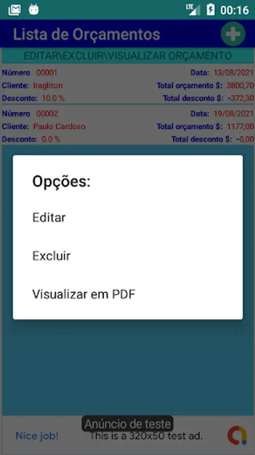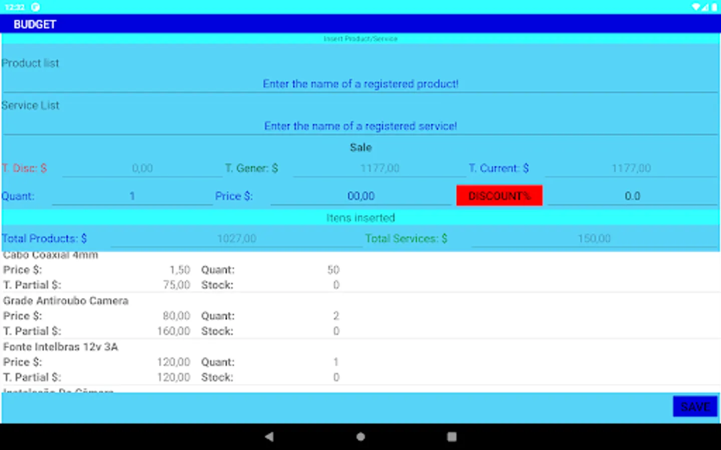 Simple application to manage and send budget and work order in PDF to your customers through sharing, in addition to a simple personal inventory control.