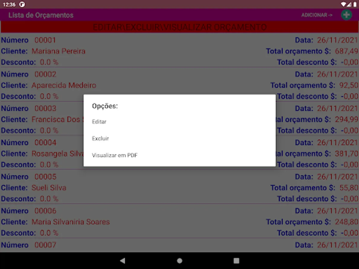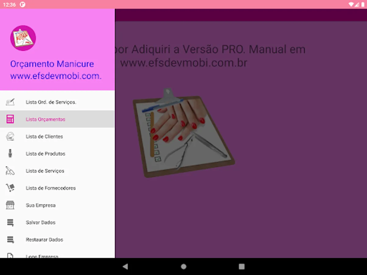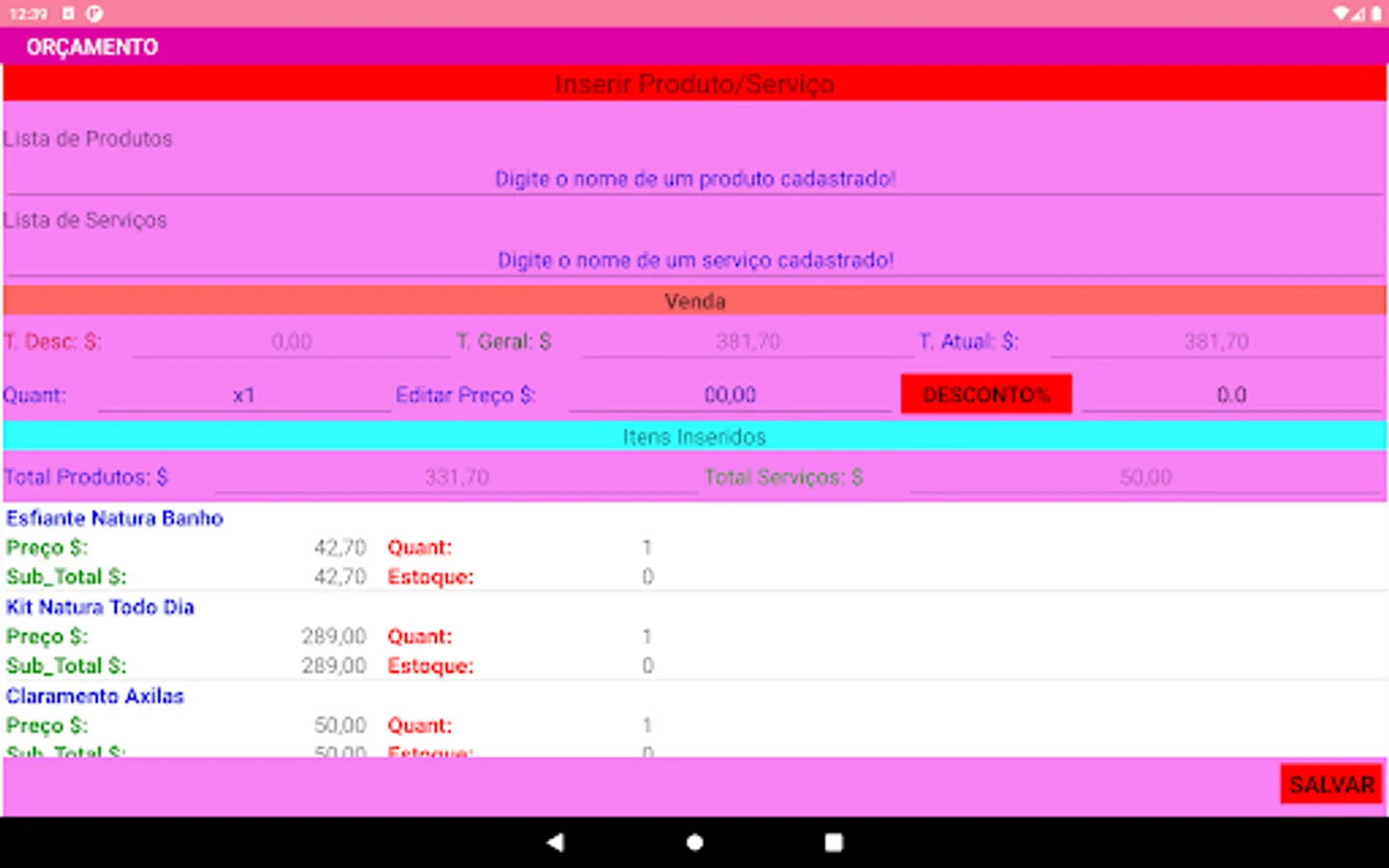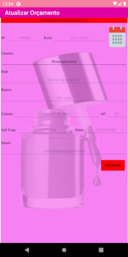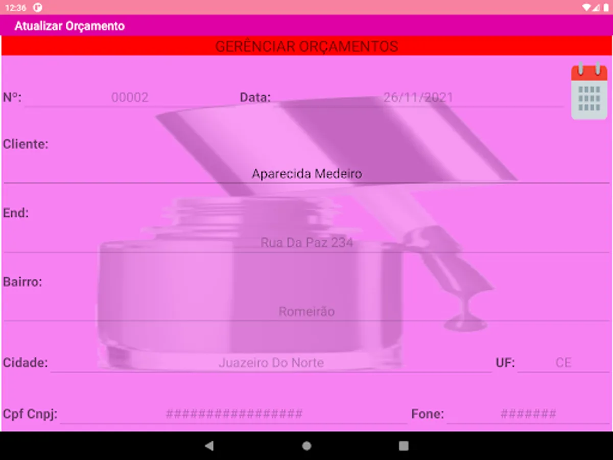 Application to generate budget and register customers, products and services, intended for self-employed in the area of beauty services. It has a simple inventory control. allows you to generate a PDF file and send it to the customer by