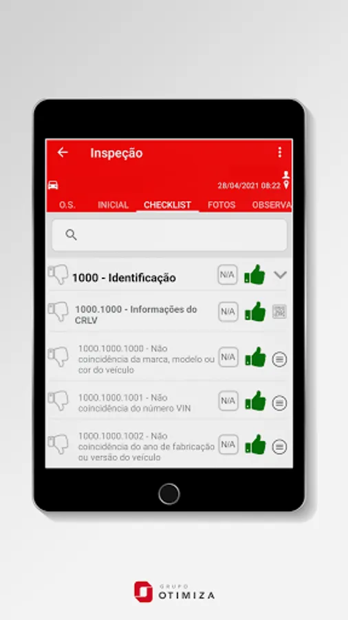 The digital checklist is intended to facilitate the capture of evidence during the issuance of a vehicle safety certificate and / or audit. Developed for Optimiza customers.