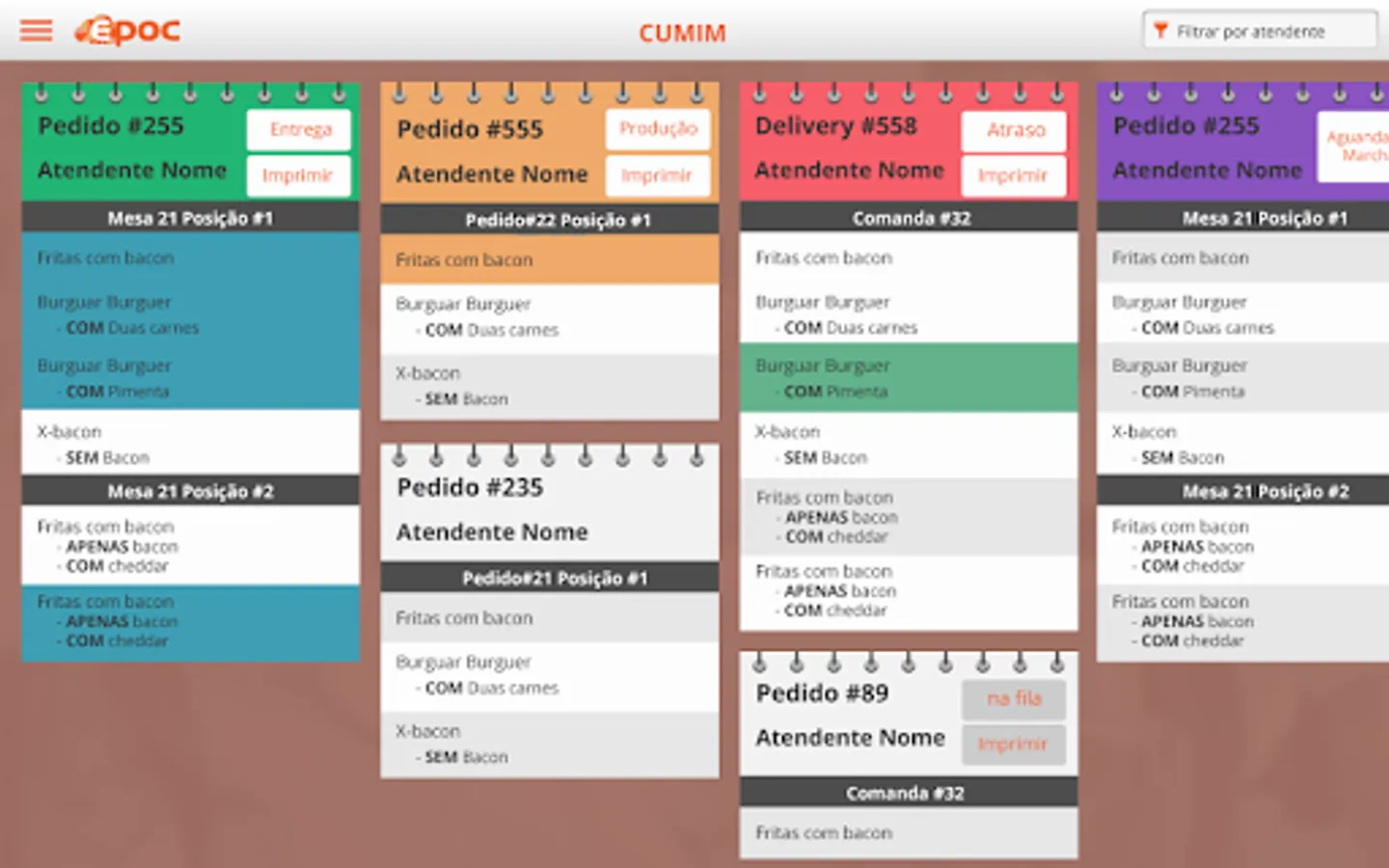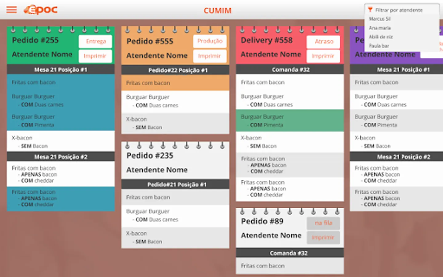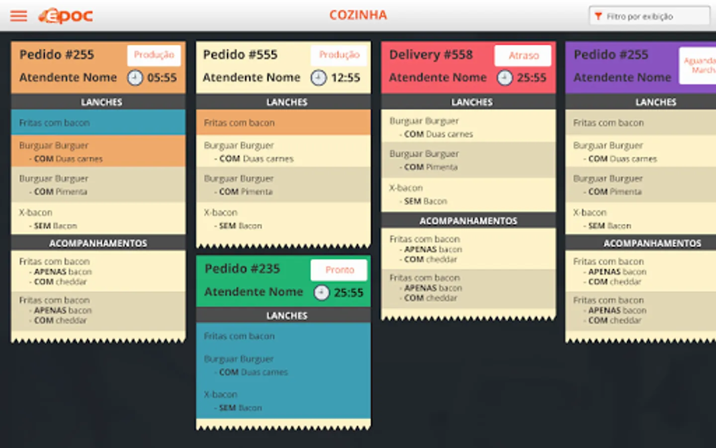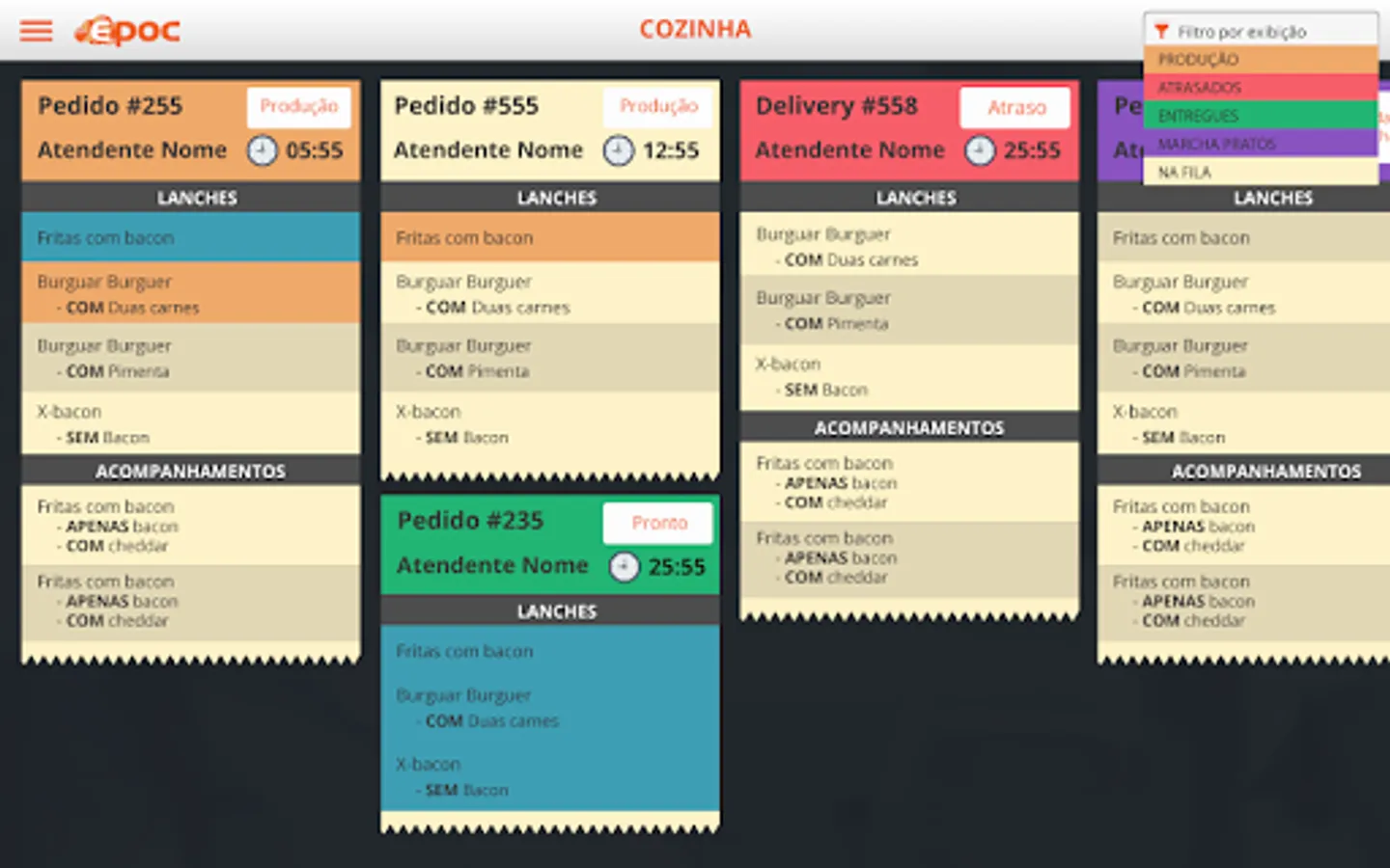 The confidence that screens provide, leaving no forgotten or delayed orders. Indicates the time since the order entry and, if the production time is registered, if there are delays. Not to mention the dynamics and transparency between the teams.