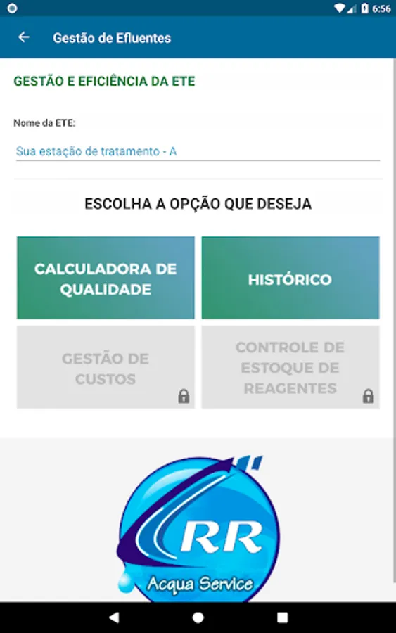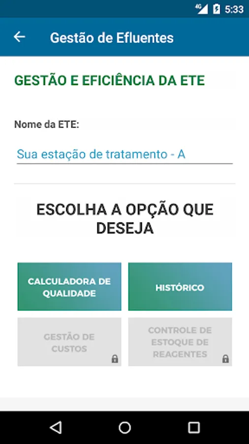 The "Water and Wastewater Management" application is the first free effluent treatment facility efficiency management and calculation application. The calculation is done through the quality calculator, and is intended, in this first moment, to the activated sludge treatment system.