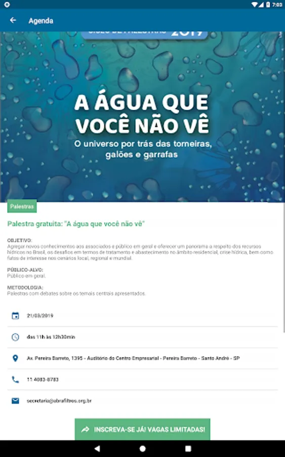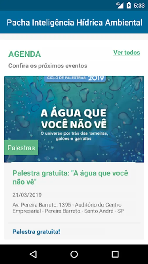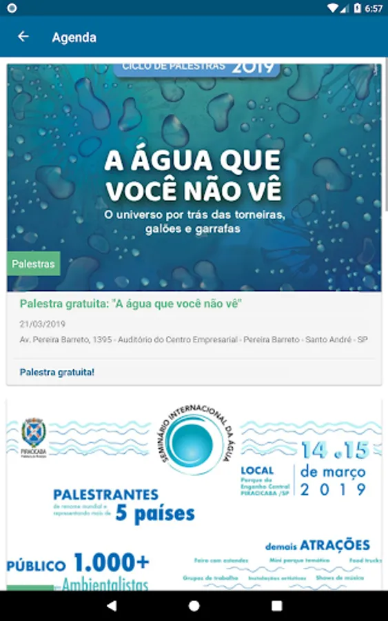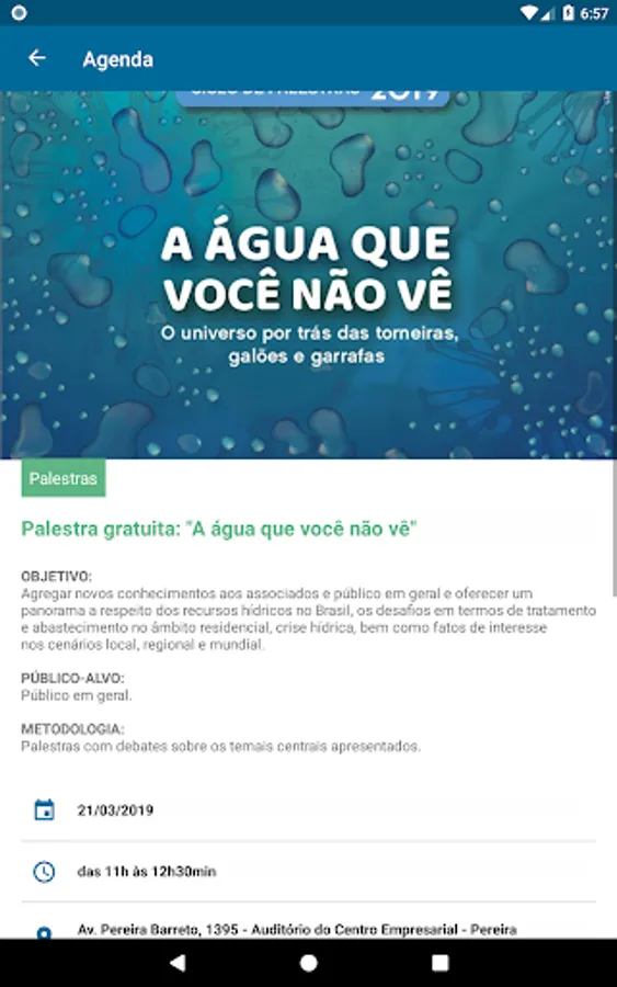 Through the application can also be verified the agenda with the main events of the sector, with periodical update, and has as objective the dissemination of information and the meeting, approximation and mobilization of the public of the environmental area.