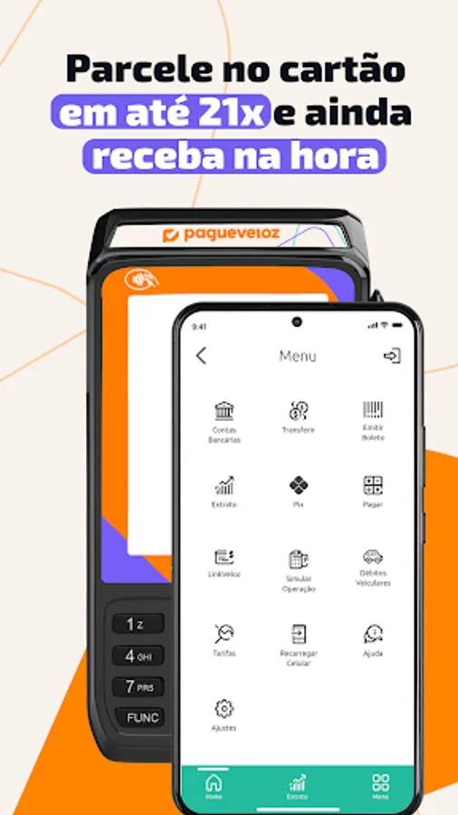 Issue slips, make and receive transfers, make Pix, pay your bills, recharge your cell phone or charge and receive the money in your account instantly, all this quickly and intuitively, keeping you in control at all times.