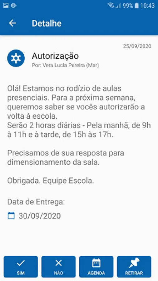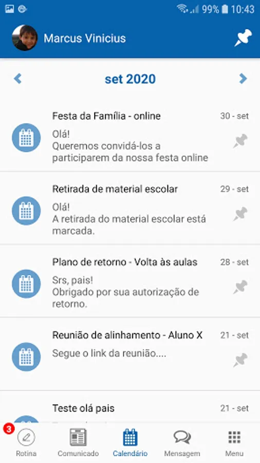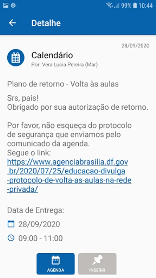 We know how difficult it is to reconcile work and family on a daily basis. Follow everything that happens at the children's school, attend to requests and homework to complement the pedagogical activities at the school. Read all the information, such as the day's message, messages, announcements and also reserve that day and time in the agenda to go to school and attend important meetings and events.