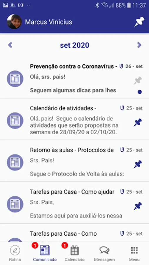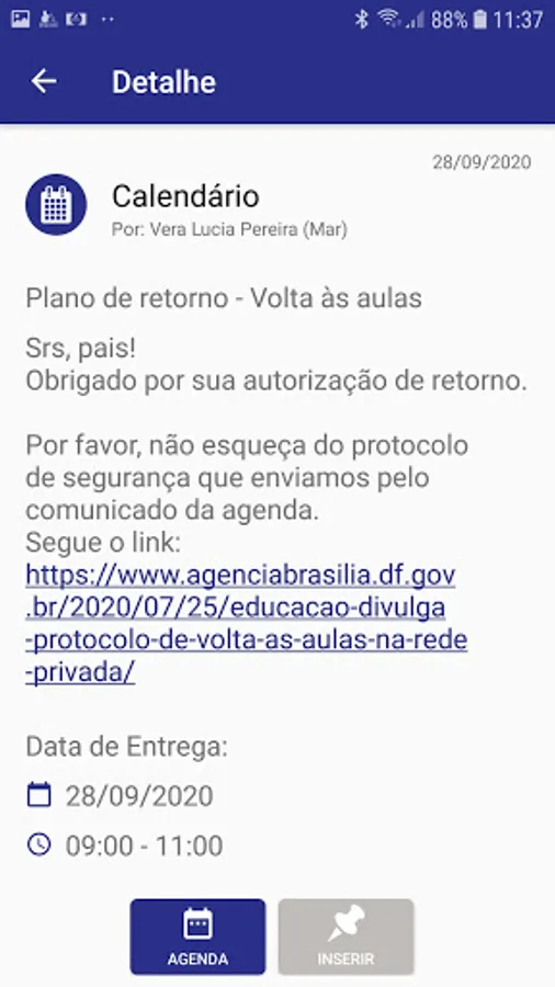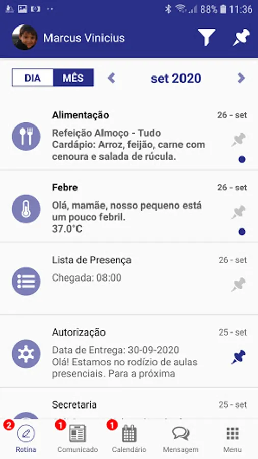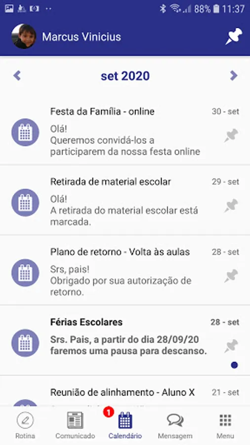 We know how difficult it is to reconcile work and family on a daily basis. Follow everything that happens at the children's school, attend to requests and homework to complement the pedagogical activities at the school. Read all the information, such as the day's message, messages, announcements and also reserve that day and time in the agenda to go to school and attend important meetings and events.