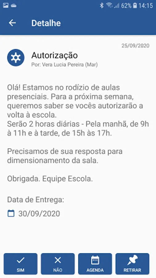 We know how difficult it is to reconcile work and family on a daily basis. Follow everything that happens at the children's school, attend to requests and homework to complement the pedagogical activities at the school. Read all the information, such as the day's message, messages, announcements and also reserve that day and time in the agenda to go to school and attend important meetings and events.