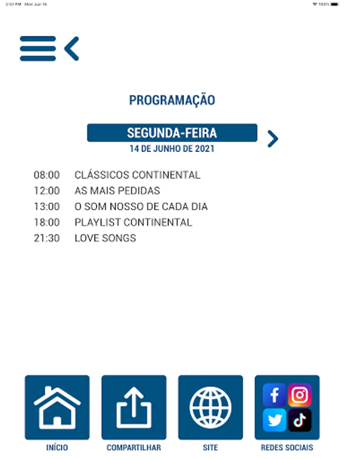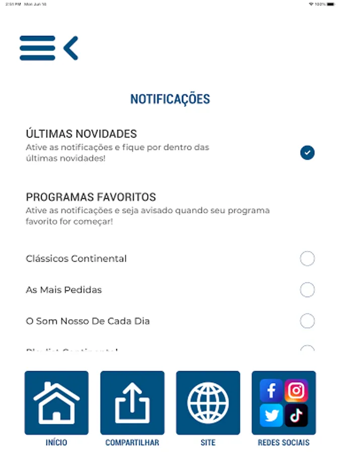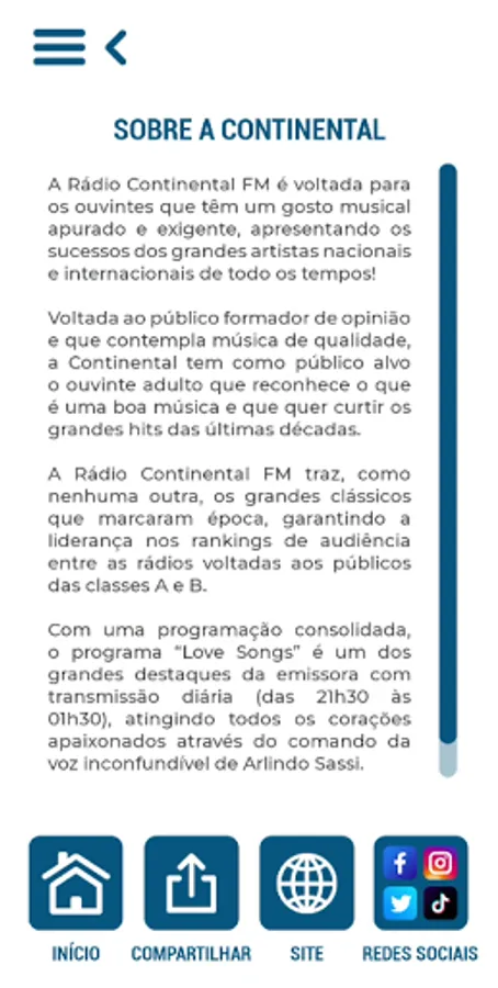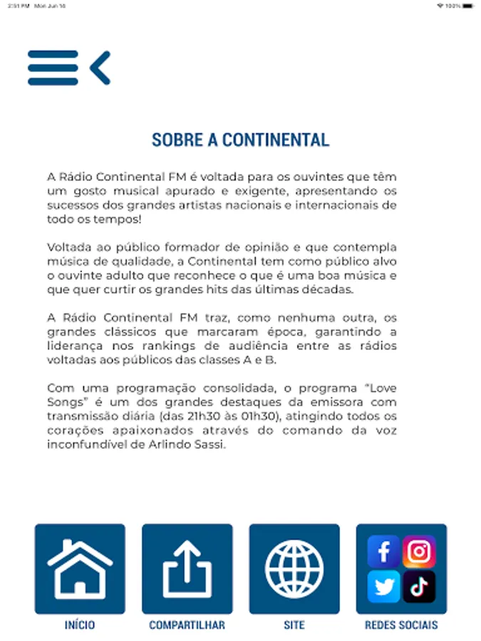 Application of Radio Continental, a broadcaster of the Pampa Communication Network.