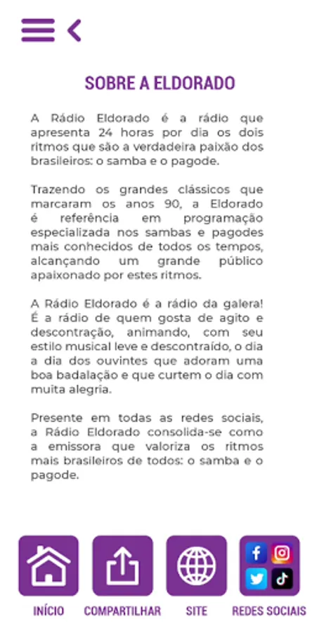 Application of Rádio Eldorado, a broadcaster of the Pampa Communication Network.