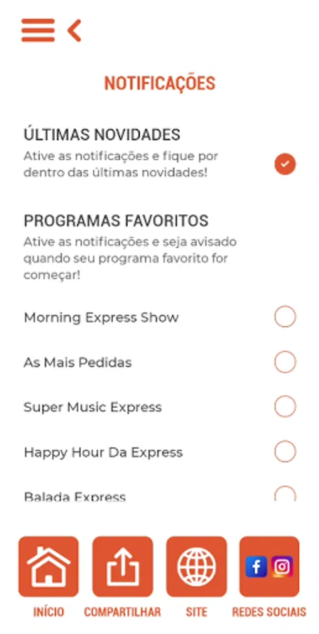 Application of FM Express, a broadcaster of the Pampa Communication Network.