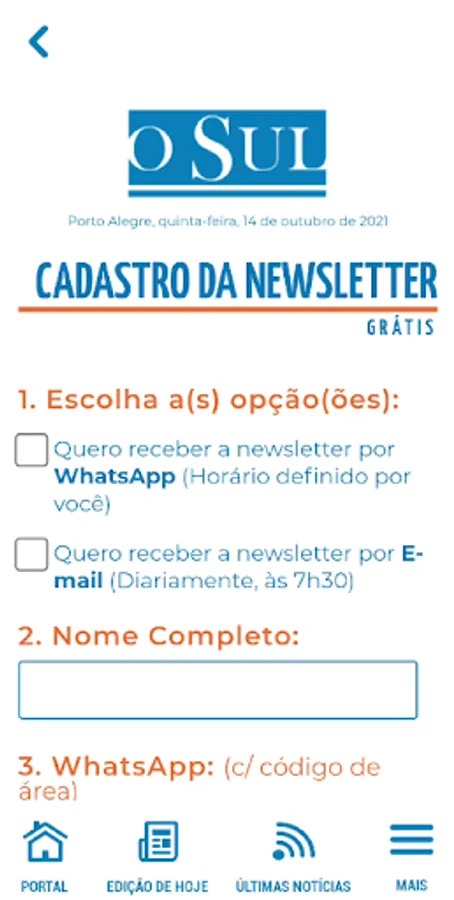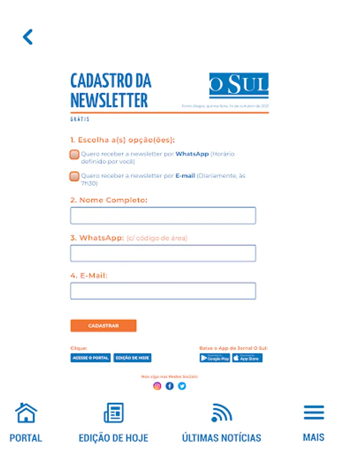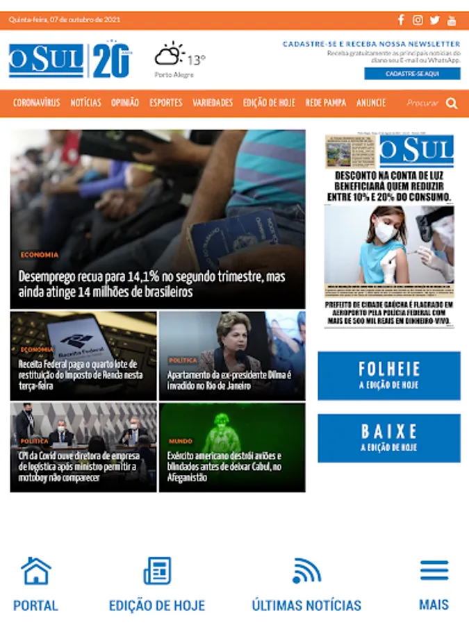 Application of Jornal O Sul, a vehicle of the Pampa Communication Network.