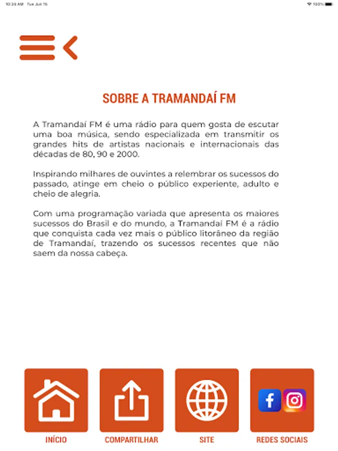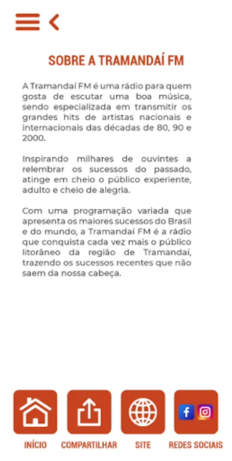 Application of Radio Tramandaí FM, a broadcaster of the Pampa Communication Network.