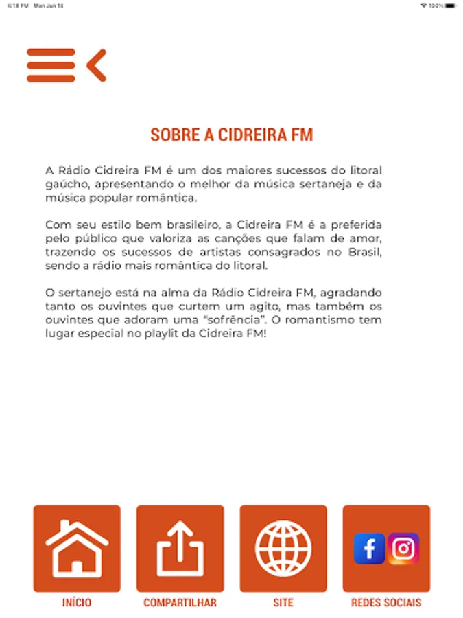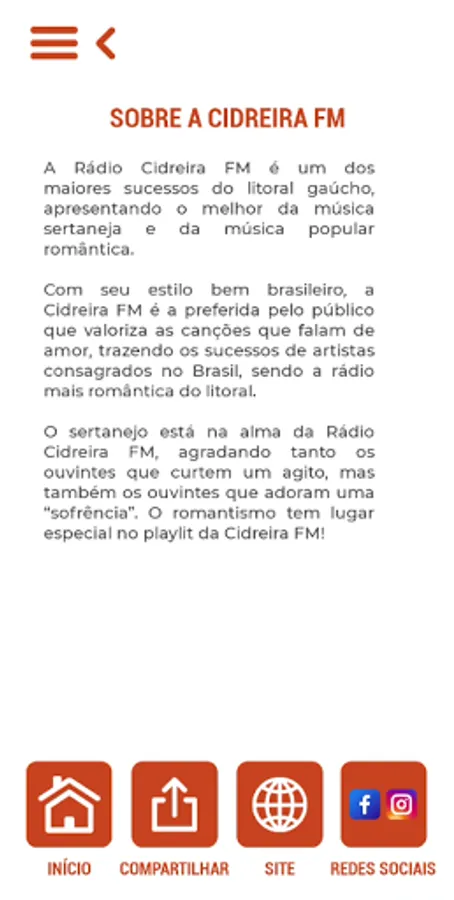 Application of Radio Cidreira FM, a broadcaster of the Pampa Communication Network.