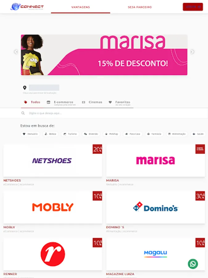 1. Download the Connect Clube app. register, choose the best promotions and enjoy the discounts.