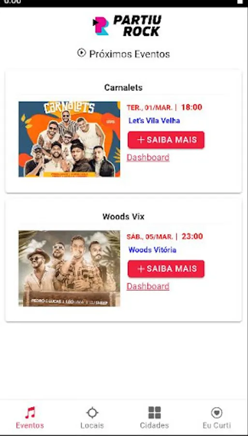 The Partiu Rock application is an application for you to follow the parties here in the state of Espirito Santo in Brazil, always staying connected to all the information and attractions of the parties that take place.