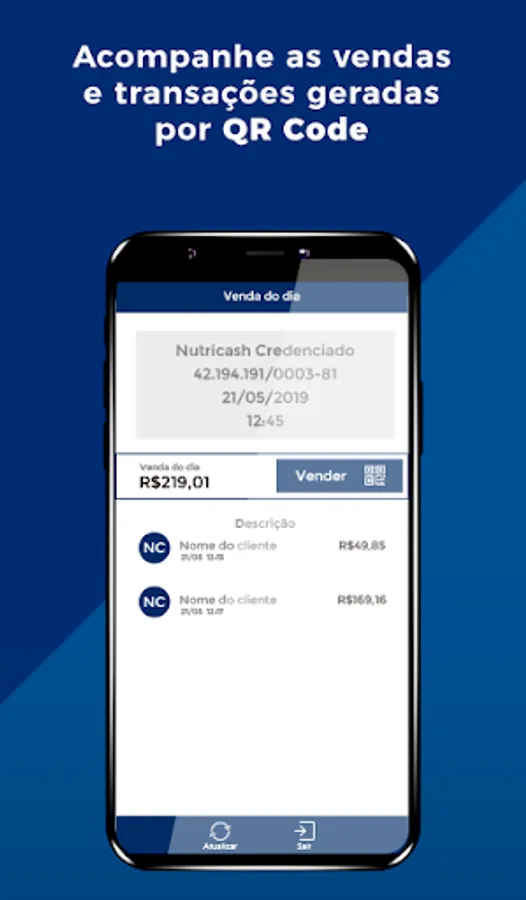 The Nutricash Establishments app is there to make your everyday life even easier. With it, you can make sales by phone, without the use of the card machine. By generating and reading QR Code, transactions can be performed simply, quickly and safely, providing more convenience for your day to day.
