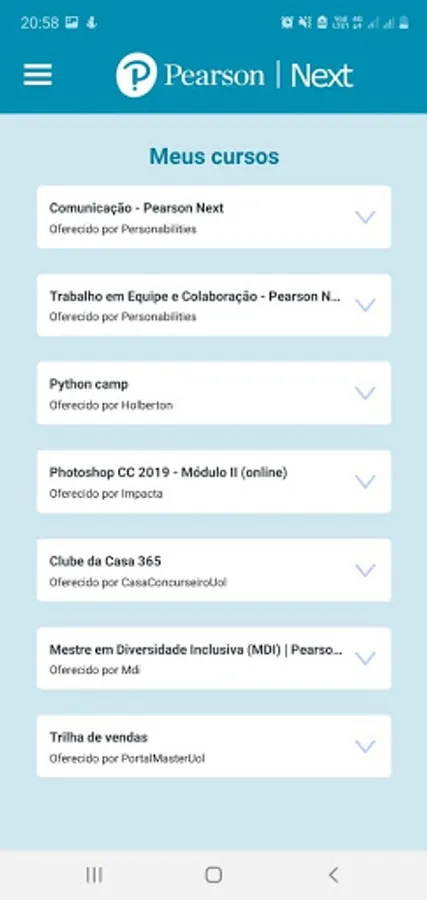 The Pearson Next App connects you directly to the list of courses purchased on our platform.