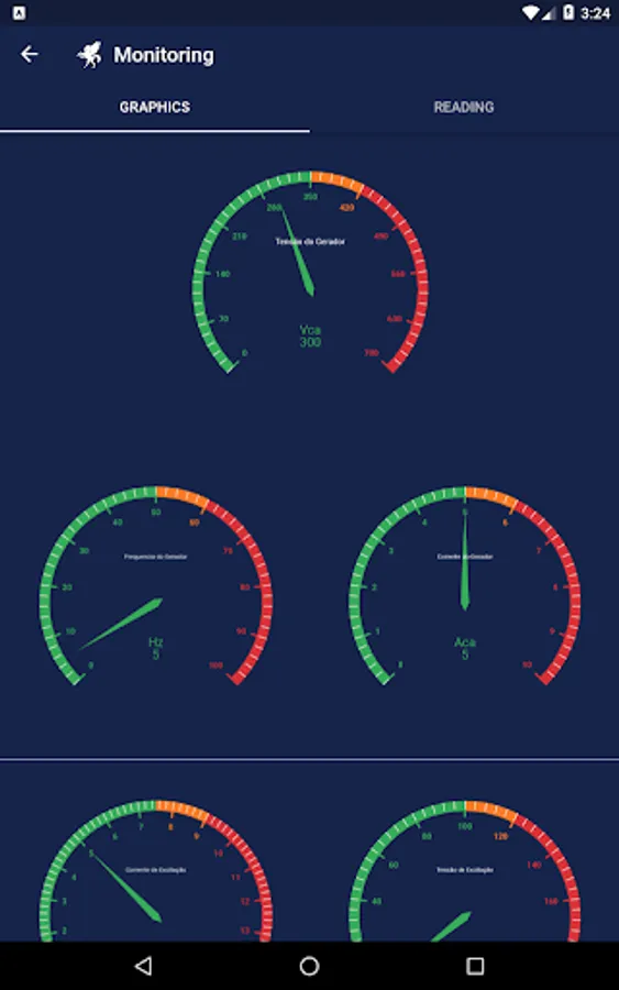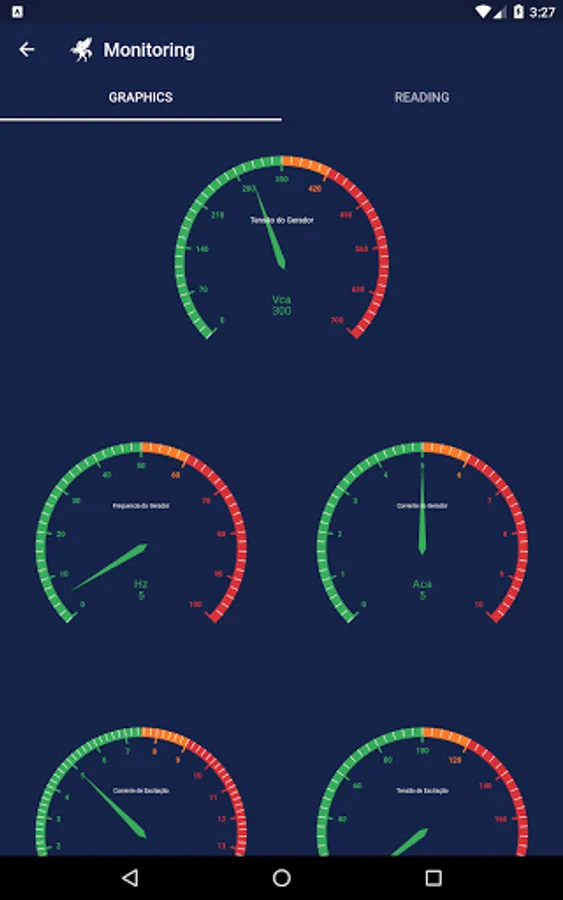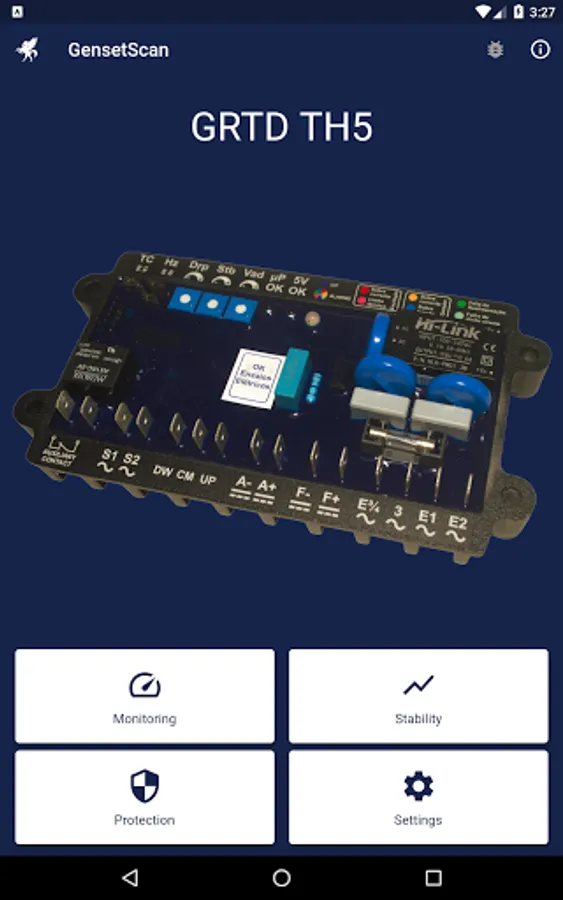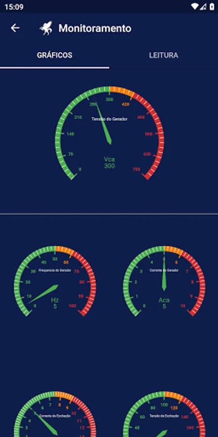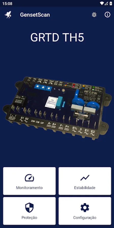 Through an application for Android/iOS smartphones, data is collected, analyzed, and stored, generating dashboards that present detailed graphics about the electric generator, through this application it is possible change AVR parameters, such as generator output voltage, field current and armature limiters, over voltage protection, over current protection. Is possible configure rotating diode fault alarm, as well as status of active alarms and protections of the AVR, and operating modes.