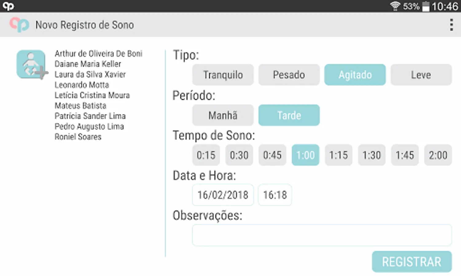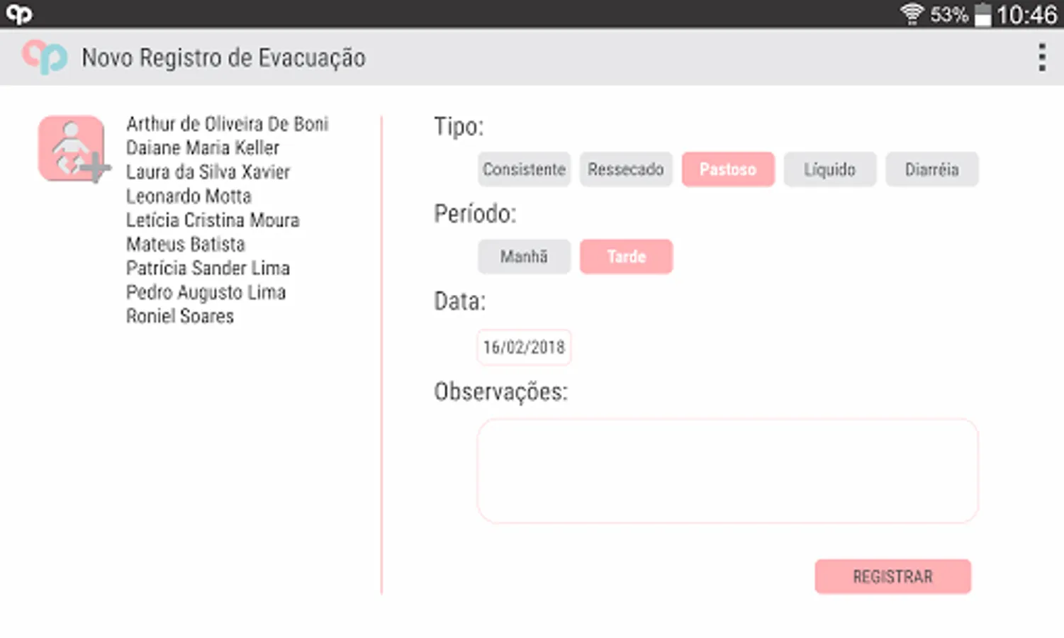 Pequeninos Educadores was developed with the intention of being a daily facilitator of the teachers and assistants of its School of Early Childhood Education. It is a complement to Pequeninos Web, where it can be used to record the daily activities of the school's students.