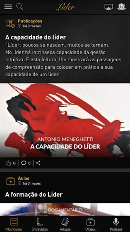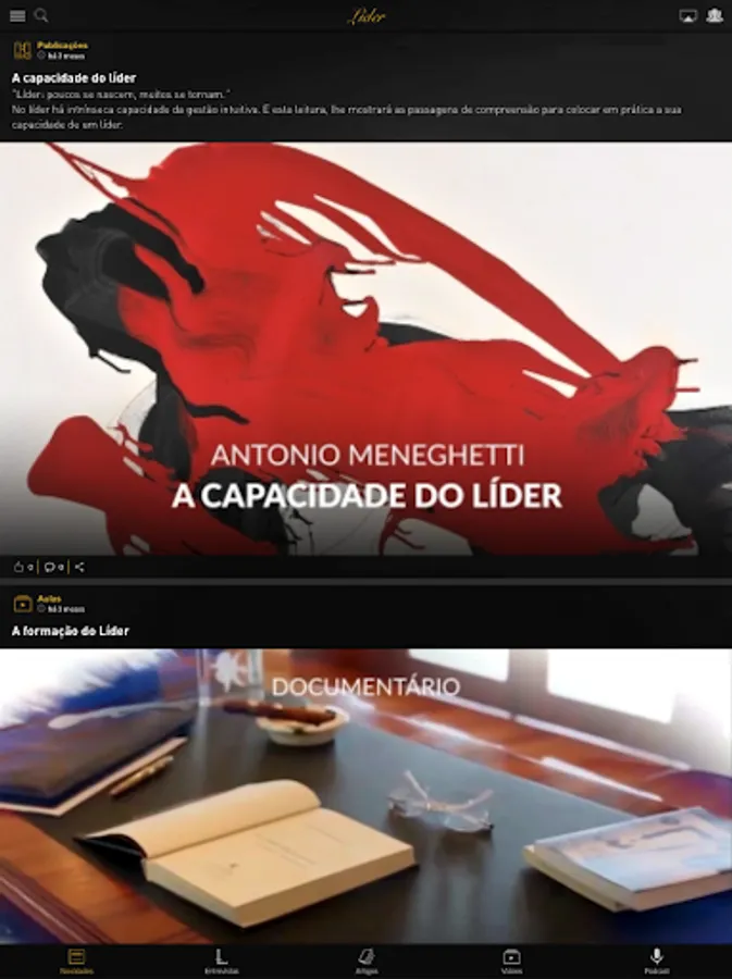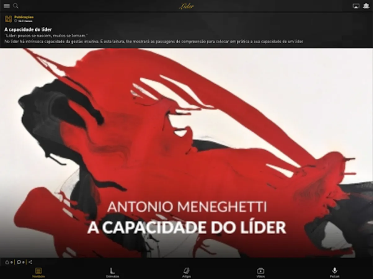 The Leader app is an innovative space to encourage learning, knowledge and growth, with themes related to the universe of leadership. In a learning experience designed exclusively for the digital environment, it provides full access to exclusive content produced by Performance Líder.