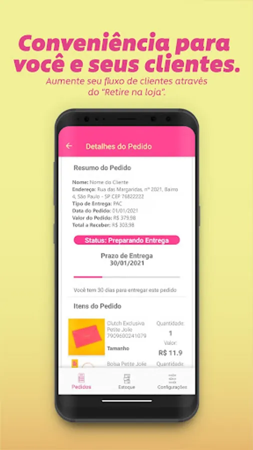 The PJPlace application was developed to be in the merchant's palm. Very practical to use, it concentrates consumer orders received by the store through Petite Jolie's e-commerce, its stock and configurations. From the integration with the brand's e-commerce, consumers can buy from their store, enjoying the convenience of in-store pickup or “delivery” type shipping, with faster and more accessible freight.