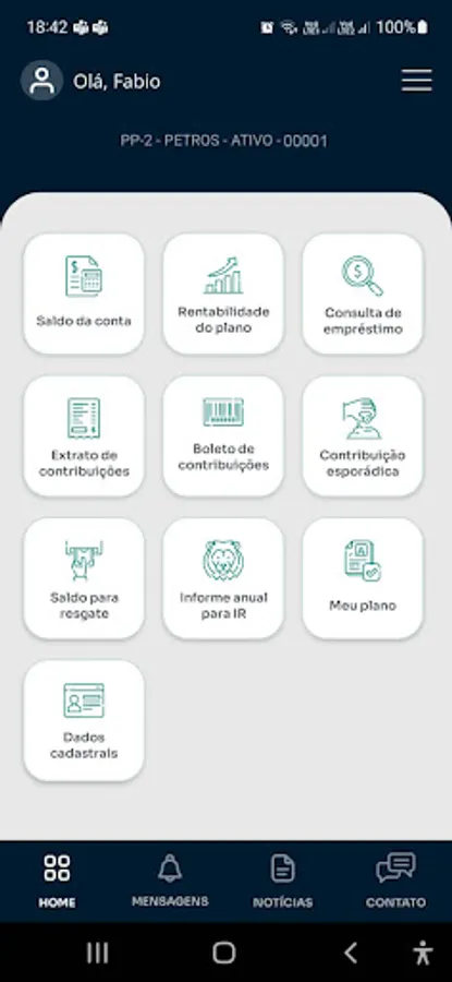 It offers access to services such as account balance, redemption balance, paycheck, plan profitability, loan statement, news, among others.