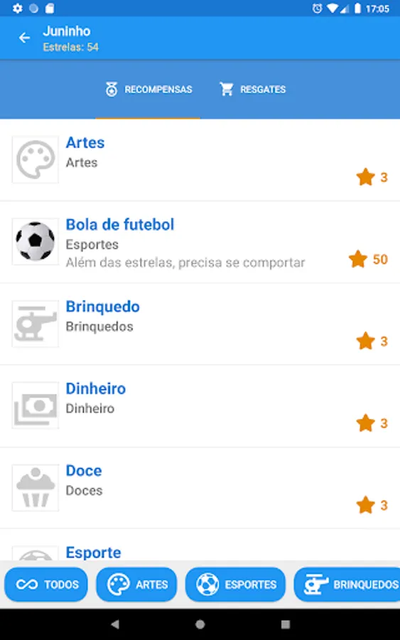 Reward system, where each completed chore is worth stars that can be exchanged for prizes registered by parents.