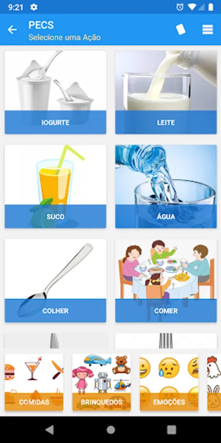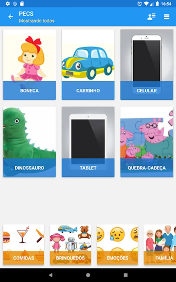 PECS - Picture exchange communication system, which when touching the image, the application speaks the related word. The system provides several previously registered figures, but parents can register their own figures.
