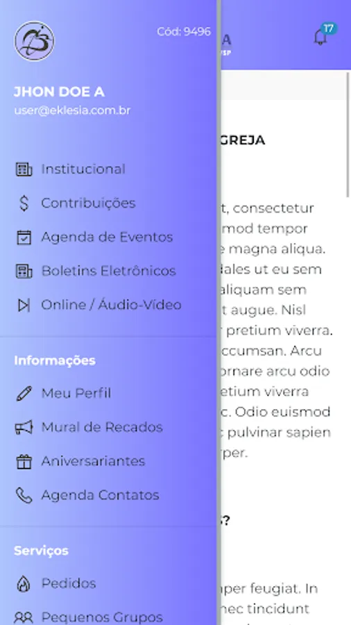 The Portal Pib Junqueirópolis allows the relationship between the Church and its members, as well as the management of Cells, Discipleships, Ministries, Events and Communications in General.