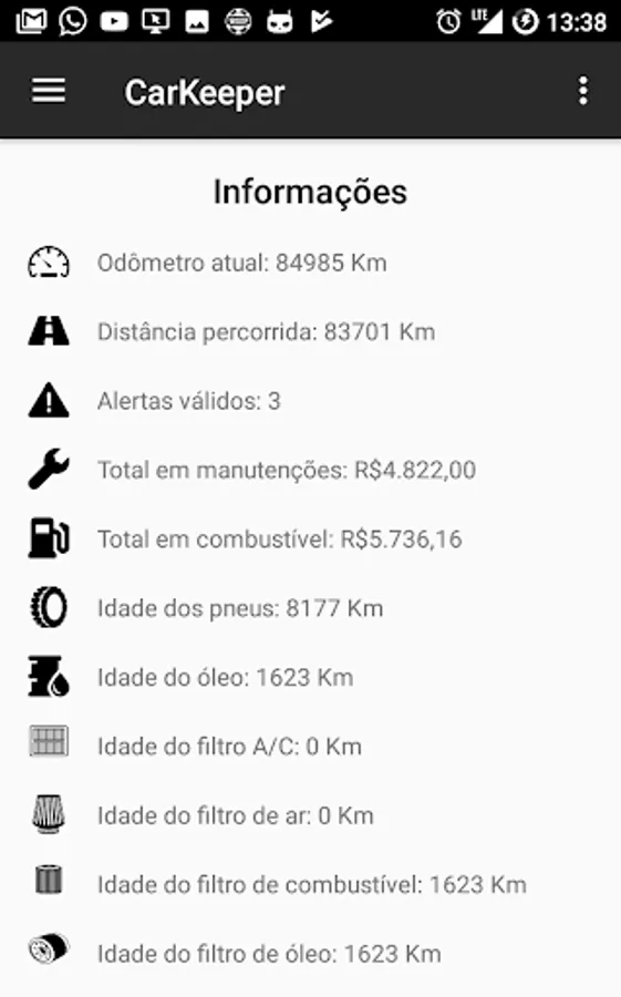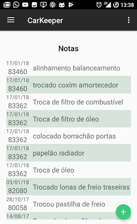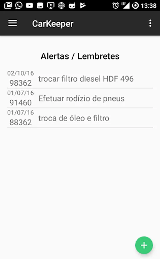 It is possible to make notes of maintenance such as oil changes and tire rotation, for example.