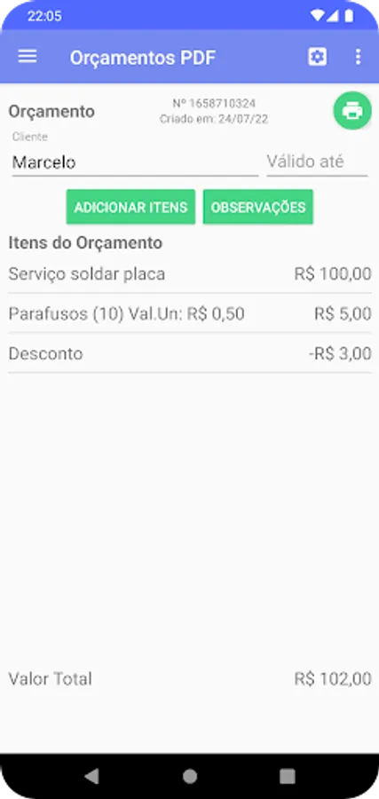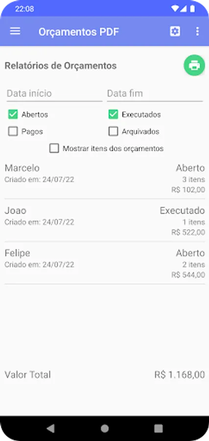 It uses a simple information reuse system, where it is possible to reuse customers and items already registered in other budgets, without the complexity of traditional systems for registering products and services.