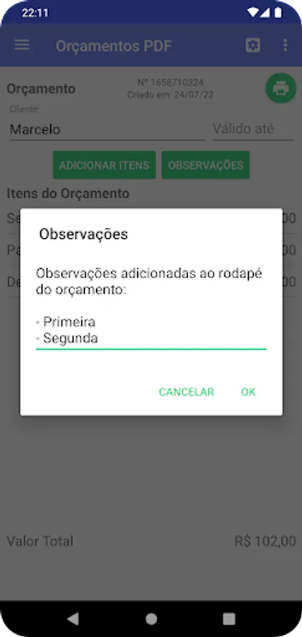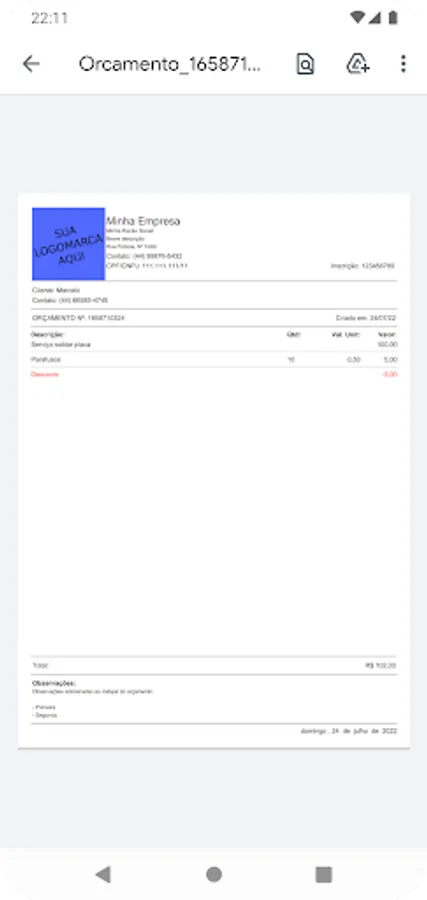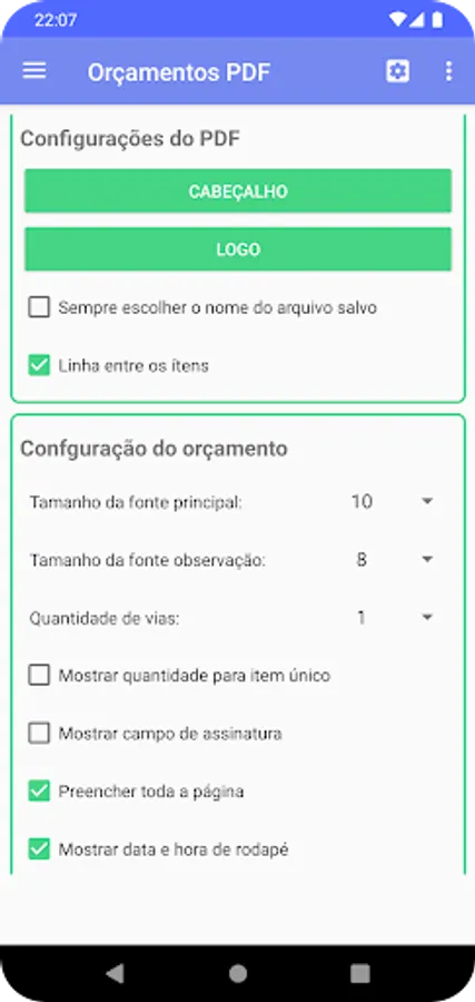 * For your security, the CPF/CNPJ and Enrollment information contained in the quotes header are not saved in the cloud. Therefore, whenever it is necessary to reinstall the application, it will be necessary to inform them again.