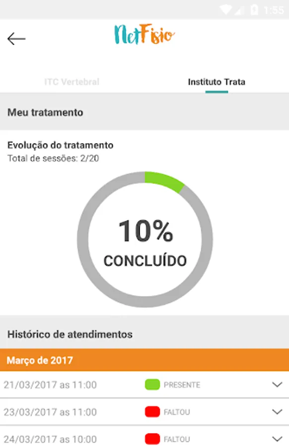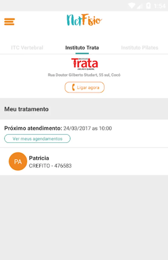 Official application of the clinics: Vertebral ITC, This Institute and Institute Pilates.