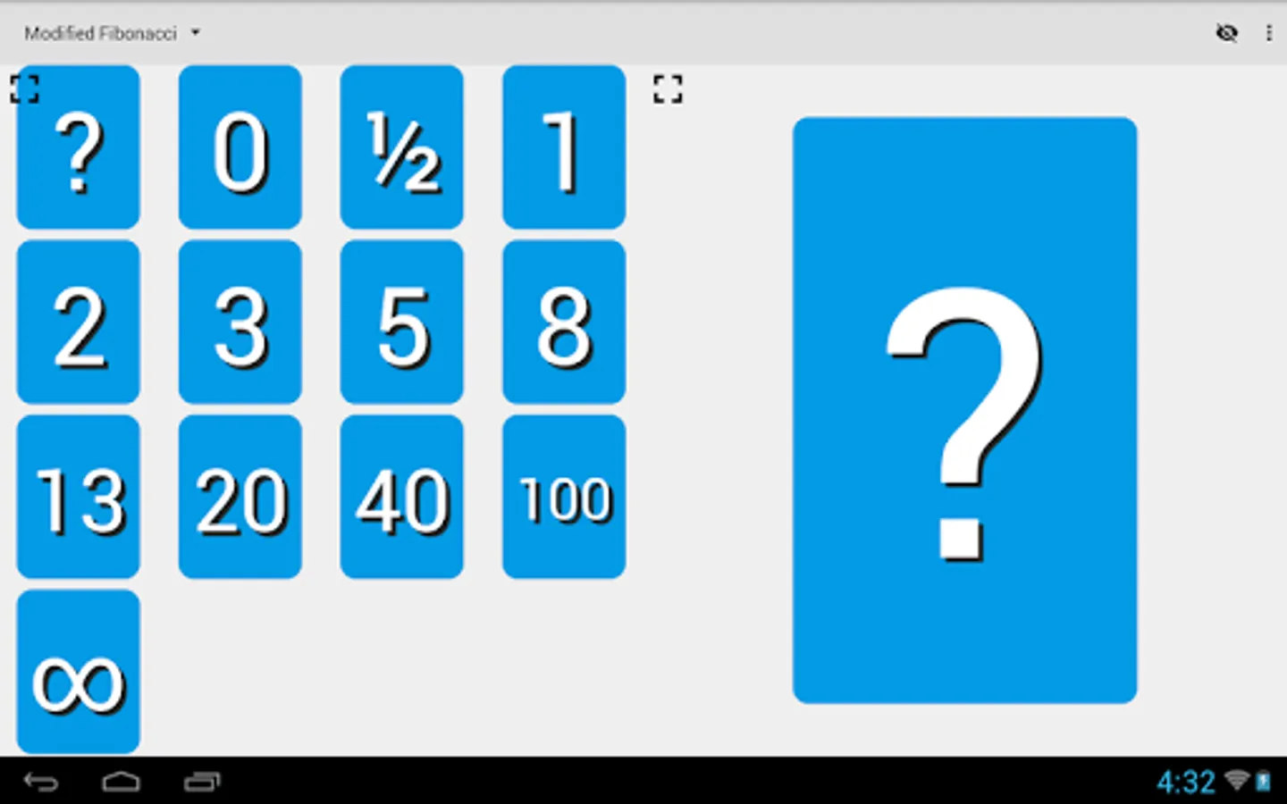 ★ Multiple types of pre-defined decks (Fibonnaci, Modified Fibonnaci, Hours and Sizes).