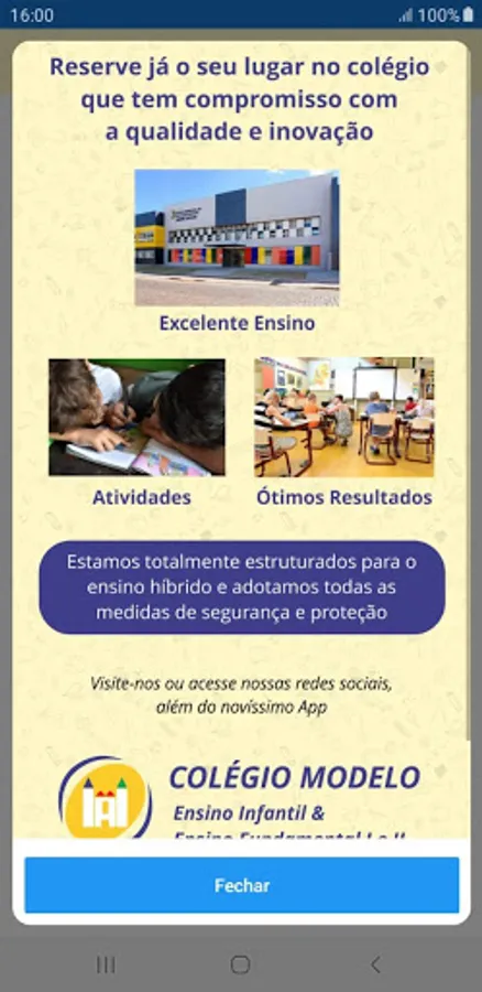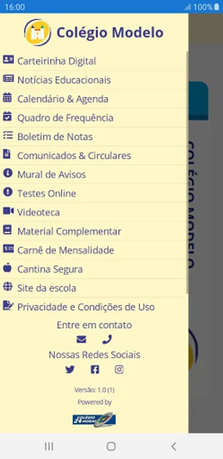 This is the COLÉGIO MODELO application that is maintained by Colégio 24 Horas and provides a series of services and features for students and the school community.