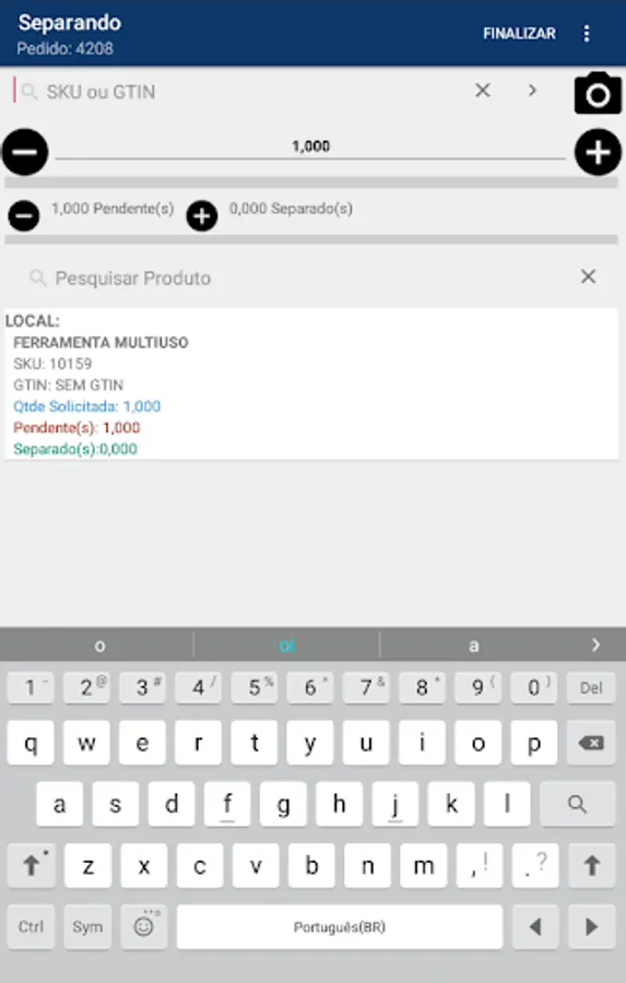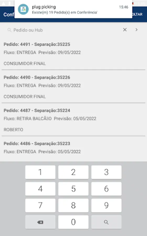 Used for separation/conference of a sales order that is in the WMS module of Pluggar ERP.