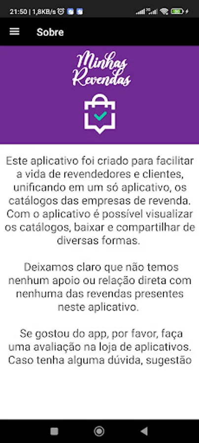 This application was created to make life easier for resellers and customers, unifying the catalogs of reseller companies in a single application. Get access to the catalogs of the main resellers in Brazil in the palm of your hand! Download or share the catalogs for even offline access. Catalogs updated fortnightly.