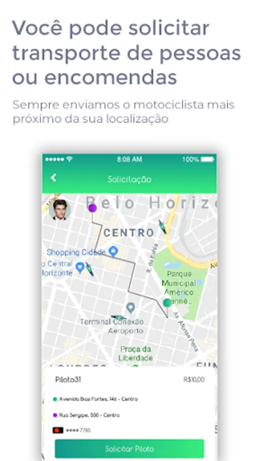 Piloto31 is an app to request a fast, cheap and safe trip with just a few clicks and it is now available across Belo Horizonte. It's the end of the concern with the delay of the bus or the car consumption. With just one touch, you can now request a trip with cash payment option.