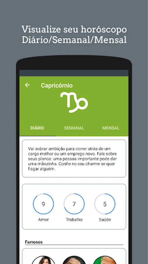 Access your horoscope straight from your mobile. Get your horoscope for today or week and even for the whole month.