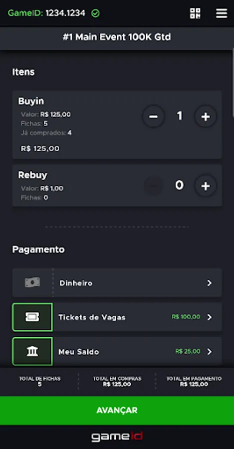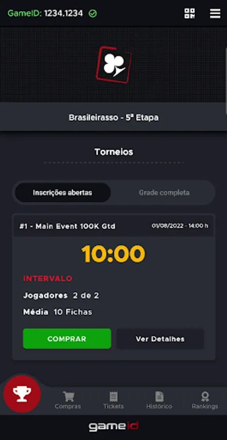 An alternative method will be to register via GameID and pay directly at the club or event cashier. This format provides greater agility in addition to significantly reducing the time it will take to complete your service. (Several clubs and events, GameID partners, will have exclusive boxes for this type of service)