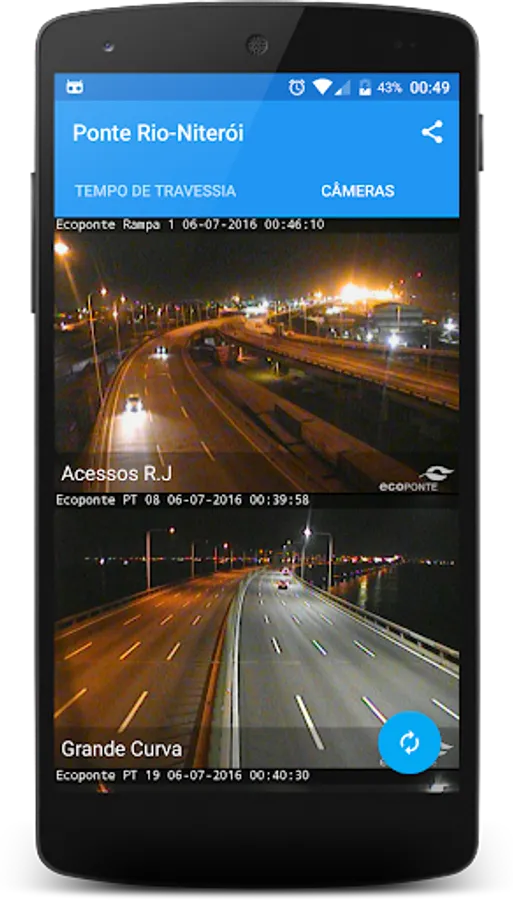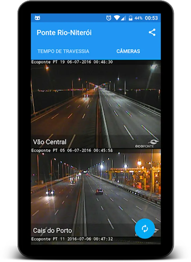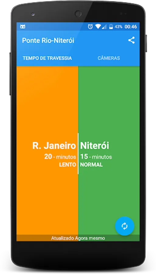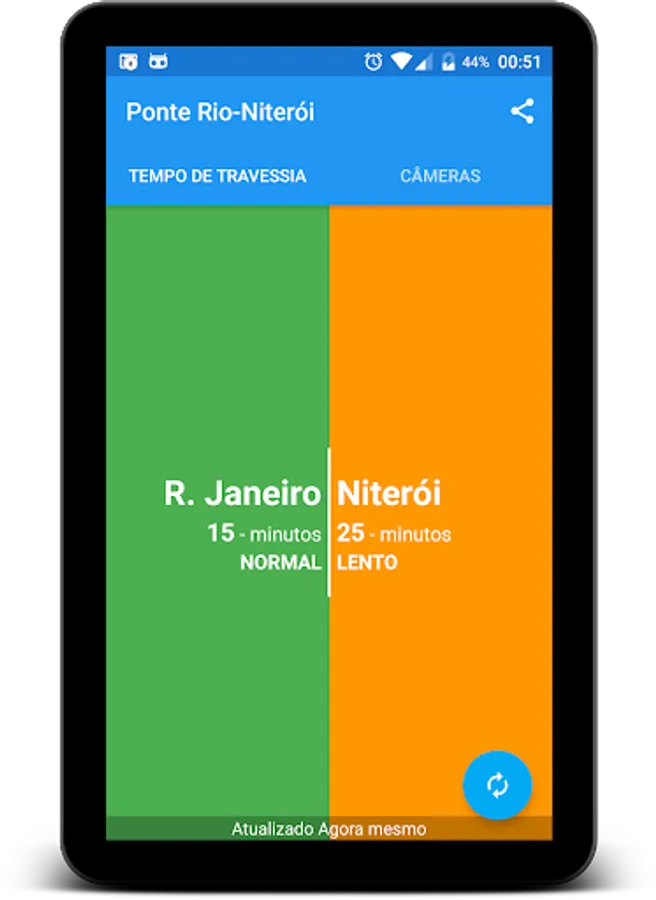 The Rio-Niteroi Bridge application aims to facilitate the quick and practical way to query the traffic on the bridge that connects the city of Rio de Janeiro to Niterói with real-time updates, making life easier on a daily basis of who uses.