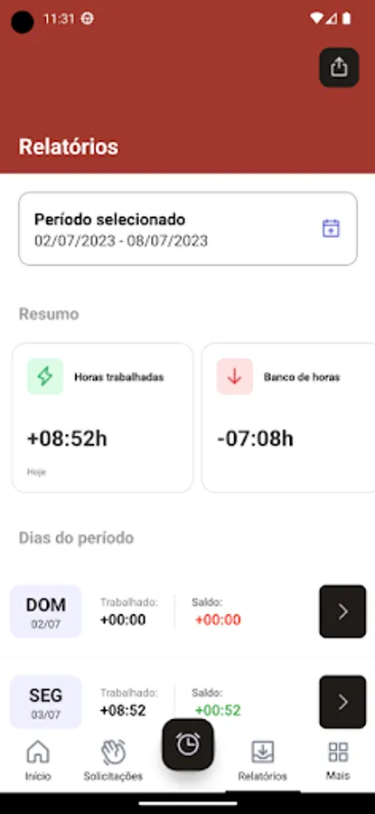 With Cavalo Manso's digital clock control, it's easy to register daily clocks and request allowances, time adjustments, holidays and much more. In addition, it is possible to browse the daily, weekly and monthly records with just a few taps, viewing the hours worked and the balance of hours by period. Get quick and easy access to your time sheet.