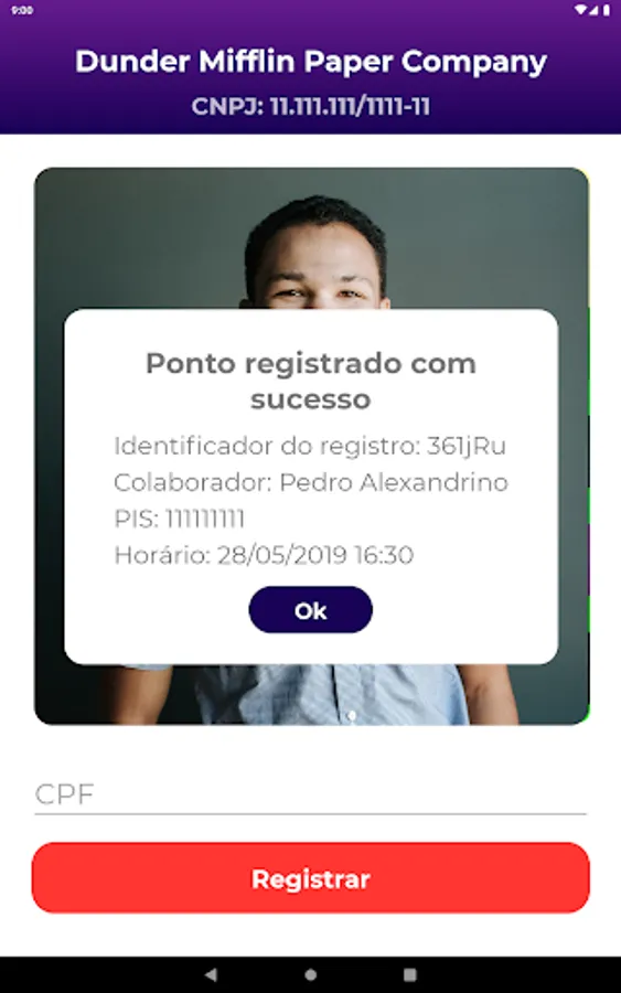 After registering, just log in and your employees will be able to register the point just by typing their CPF.