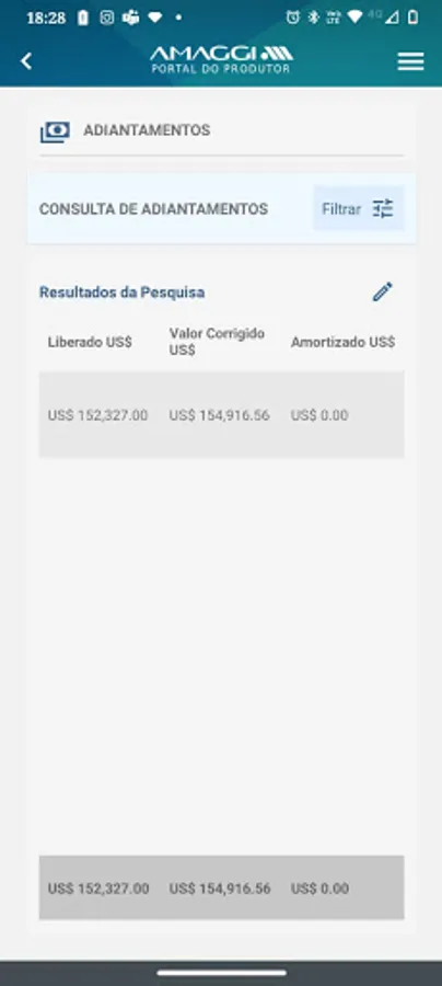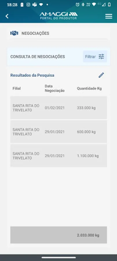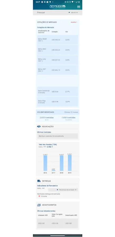 Space for the Amaggi producer to view movements and agricultural commercial information, in addition to public information on exchange rates and commodities, aggregating information from the Amaggi website in the palm of the producer.