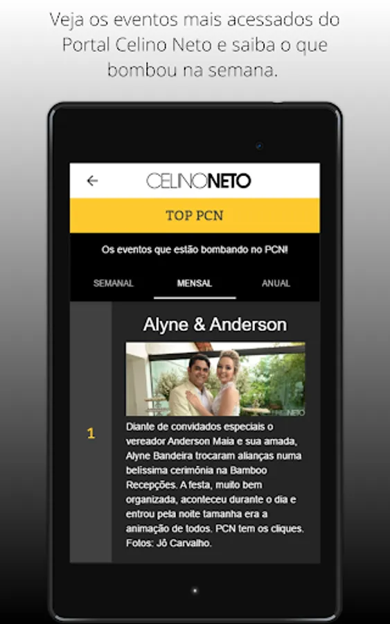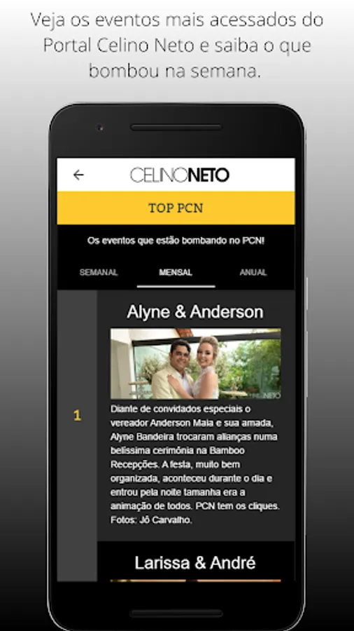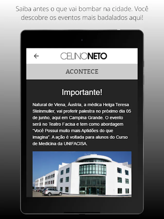 With a tap, you will have access to exclusive news, incredible covers of all state events, and offers and promotions that only APP brings you! Do not waste time, now download the NCP and enjoy an interactive information portal with the quality that is a trademark of Celino Neto!