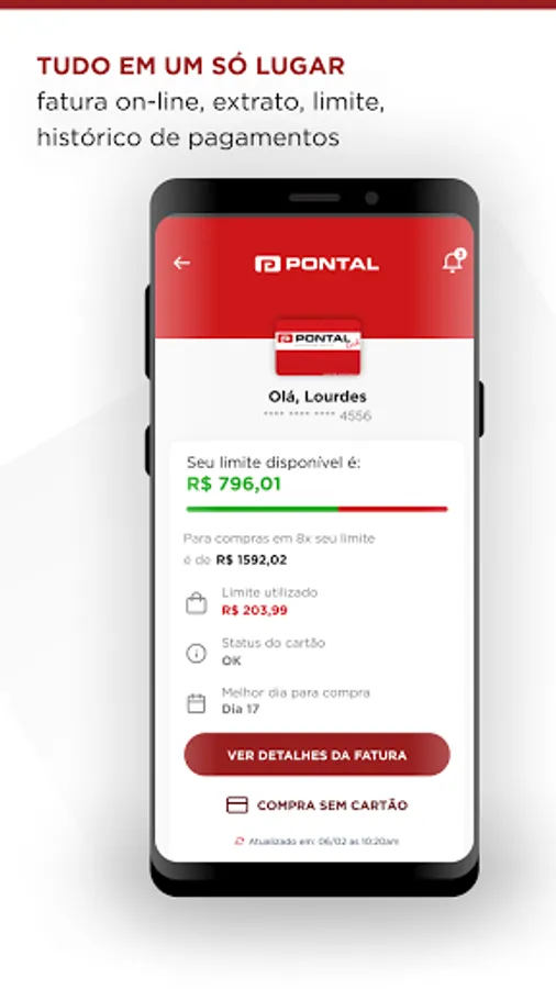 With the Pontal Card app, you can make purchases, check your limits, view your transaction history, control your expenses, remember where they happened, and stay on top of promotions from Rede Pontal. All of this in a practical and quick way.